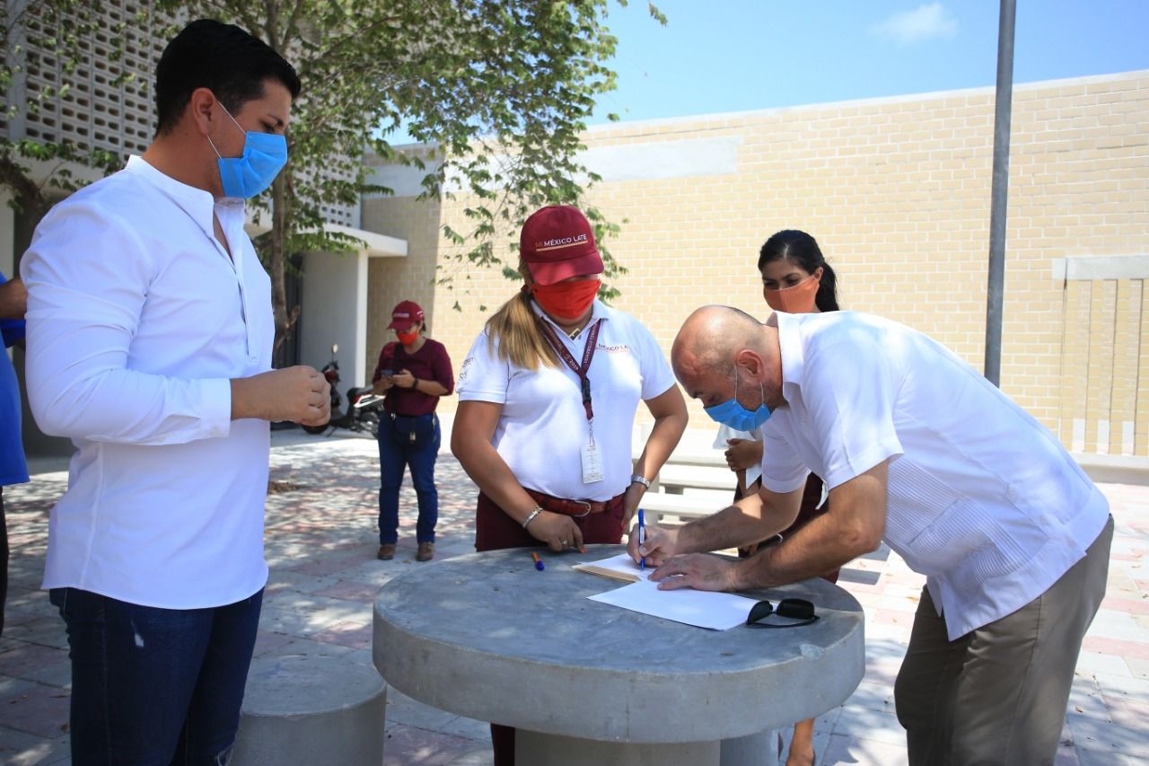 En representación de la presidente Laura Beristain, el secretario de Ordenamiento Territorial Municipal y de Sustentabilidad, David Duarte Castilla, fue el encargado de recibir las obras, acompañado de Claudia Pérez Macín, directora del Instituto Municipal del Deporte; Mirella Díaz Aguilar, directora general del Sistema DIF municipal y Antulio Álvarez Castañeda, director del Instituto Municipal de la Juventud, quienes junto con Luis Ernesto López Vargas, director del Instituto Municipal de la Cultura y las Artes (IMCAS), se harán cargo de la operación y el mantenimiento de las nuevas instalaciones. También estuvo presente durante los actos protocolarios la quinta regidora Bárbara Aylín Delgado Uc.