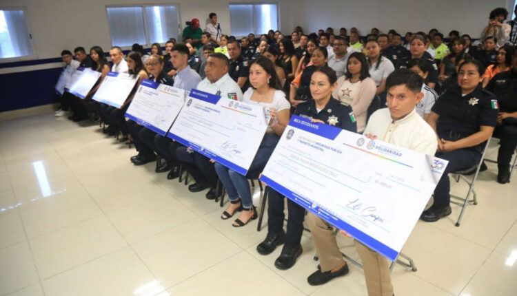 Entregan becas a hijos de la policía municipal en Playa del Carmen.