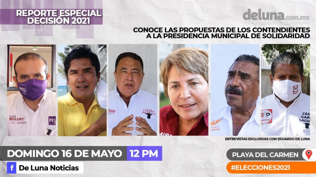 El domingo 16 de mayo acompáñanos a conocer las propuestas de estos candidatos a la presidencia municipal de Solidaridad.