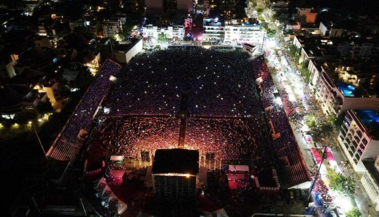 Playa del Carmen, Quintana Roo, 15 de septiembre de 2025.– En un hecho sin precedente en la historia de Playa del Carmen, la presidenta municipal Estefanía Mercado encabezó esta noche la ceremonia conmemorativa por el 215 aniversario del Grito de Independencia ante más de 50 mil personas reunidas en el estadio Mario Villanueva y sus alrededores, en una fiesta mexicana que estuvo amenizada por Grupo Frontera.