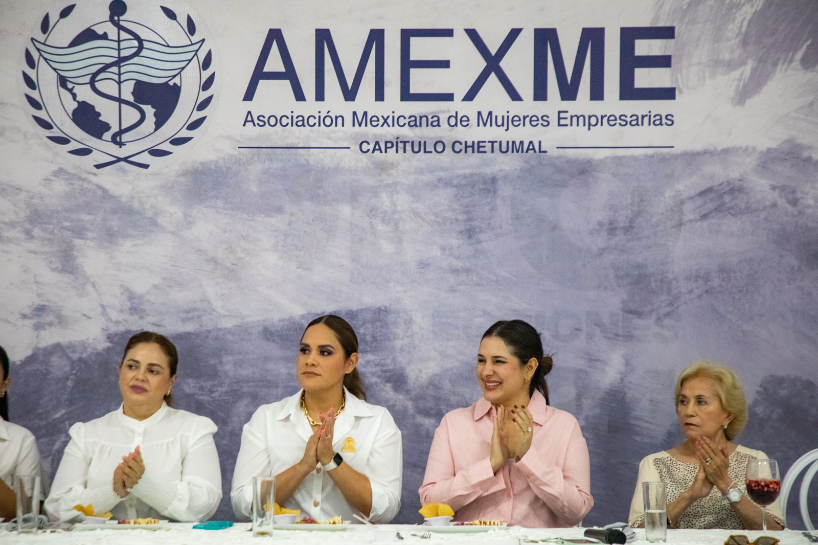 Posteriormente, en un encuentro con integrantes de la Asociación Mexicana de Mujeres Empresarias (AMEXME), capítulo Chetumal, la presidenta municipal de Playa del Carmen compartió los avances y resultados del “Modelo Playa”, resaltando que se trata de una forma de gobernar que combina inversión histórica en obra pública y seguridad, programas sociales que priorizan a quienes más lo necesitan, y la recuperación de espacios públicos para la convivencia y la prosperidad de las familias.