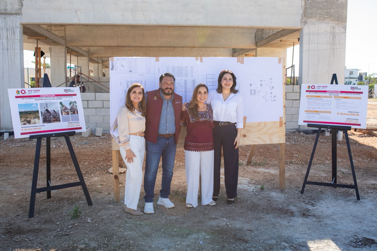 Estefanía Mercado y Mara Lezama supervisan la construcción de la Fábrica de Artes y Oficios en Playa del Carmen