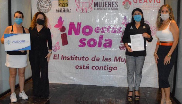 En representación de la primera Edil, la directora del Instituto de las Mujeres de Solidaridad, Mónica Bargas Caporali, signó el acuerdo con la líder de esta organización empresarial, Araceli Sandoval Ortiz, y manifestó el compromiso del gobierno solidarense actual por ser un municipio libre de violencia para la mujer bajo el programa “Espacio Seguro”, con el cual se busca ofrecer a las mujeres sitios para resguardarse en caso de sentirse amenazadas en tanto reciben auxilio policial.