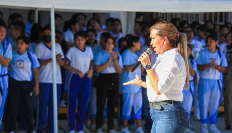 Playa del Carmen, Solidaridad, 2 de octubre del 2023.- Fomenta Lili Campos valores cívicos en estudiantes. Como parte del programa de acompañamiento de escuelas, la presidenta municipal exhortó a los alumnos a seguir preparándose; entregó reconocimientos a alumnos y maestros, así como pintura e implementos