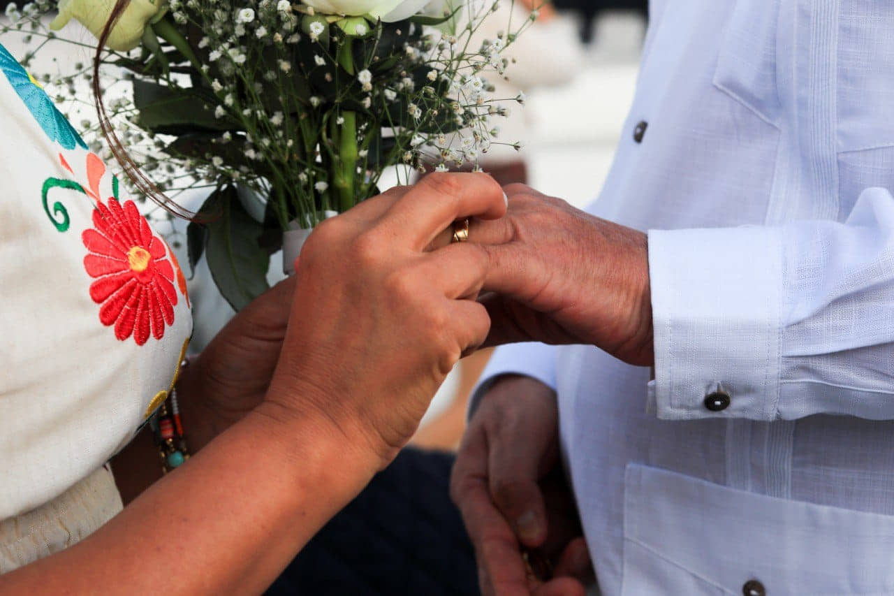 Acompañada del presidente honorario del DIF, Cuauhtémoc Escobedo Campos, la presidenta subió al escenario a Salomé Quiroga Padilla de 77 años y Ofelia Martínez Pérez de 73 años, quienes estuvieron en representación de las más de 300 parejas donde dijo que, es un honor estar en la Plaza 28 de Julio con todos los contrayentes y agradeció por haber elegido las leyes del estado de Quintana Roo y municipio para unirse en matrimonio.