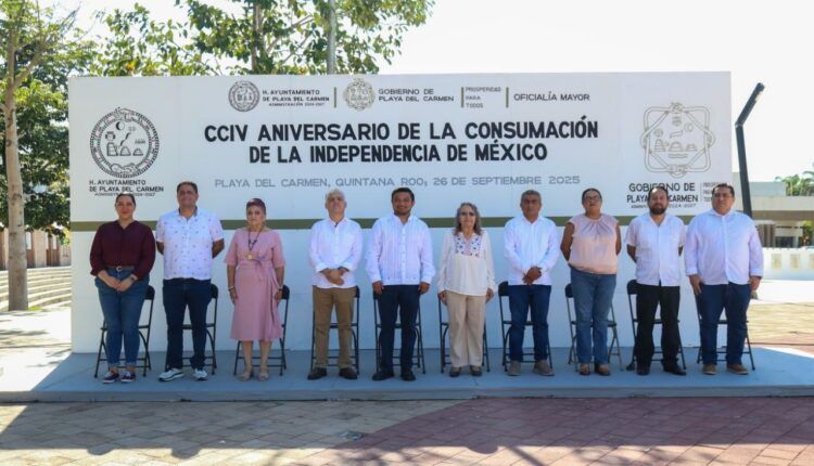 Playa del Carmen, Quintana Roo, 26 de septiembre de 2025.- El gobierno de Playa del Carmen, que encabeza la presidenta municipal Estefanía Mercado, llevó a cabo la ceremonia cívica con motivo del CCIV aniversario de la Consumación de la Independencia de México, acontecimiento histórico que consolidó el nacimiento de la nación mexicana luego de más de 11 años de lucha por la libertad.