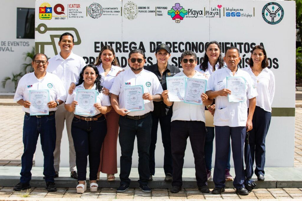 Durante el evento, realizado en la Explanada del Nuevo Palacio Municipal, se reconoció a decenas de taxistas que concluyeron satisfactoriamente cursos en temas como calidad en el servicio, calidez en la atención e inglés turístico, con el objetivo de elevar los estándares del transporte local, contribuir al fortalecimiento del destino y consolidar a Playa del Carmen como referente de excelencia en el servicio al visitante.