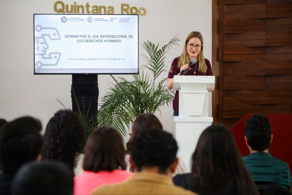 Playa del Carmen, Quintana Roo, 10 de diciembre de 2025.— “Los derechos humanos no son para celebrar, son para ejercer, garantizar y proteger”, afirmó el secretario general del Ayuntamiento, Luis Herrera Quiam, al inaugurar la Semana por el Día Internacional de los Derechos Humanos, en representación de la presidenta municipal Estefanía Mercado.