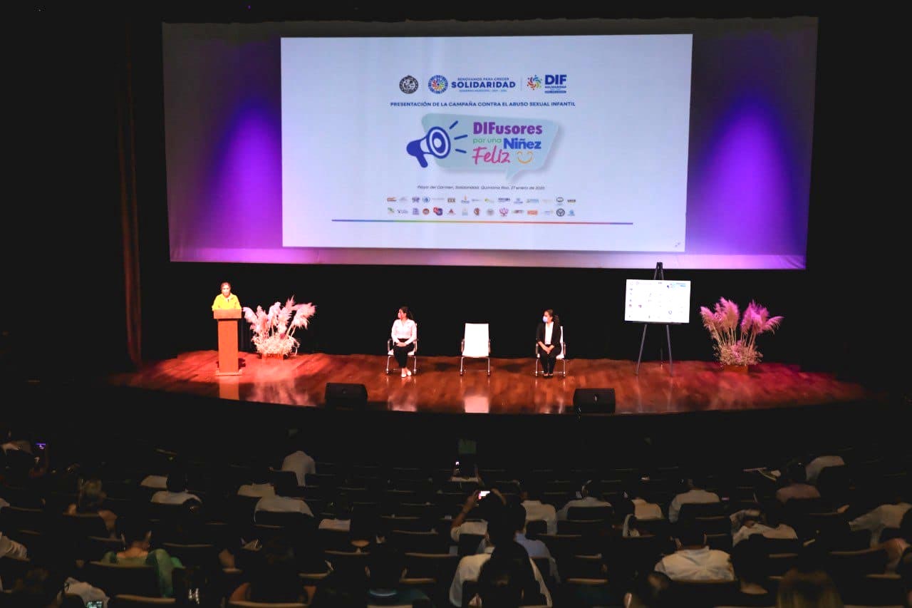 Playa del Carmen, solidaridad. 27 de enero del 2022.- La presidenta Lili Campos Miranda en conjunto con la presidenta honoraria del DIF Solidaridad, Rosita Escobedo Campos, cámaras empresariales, universidades, líderes sociales y sociedad organizada puso en marcha el programa “DIFusores por una niñez feliz”, para la prevención del abuso sexual infantil en el municipio.