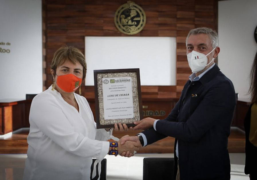 El municipio de Solidaridad estrechó lazos de cooperación y amistad con la República de Italia durante fructífero encuentro entre la presidenta Laura Beristain Navarrete y el embajador de ese país en México, Luigi de Chiara; hablaron de inversiones, la presencia italiana en la Riviera Maya y medidas preventivas para atender la pandemia por coronavirus.