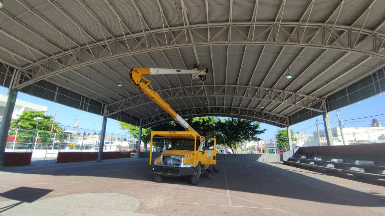 Por su parte, el director de Alumbrado Público, Javier Peraza Cadavieco, comentó que las nuevas luminarias que se colocaron en los domos son especiales ya que la luz que emiten es blanca, más vívida, además de tener un policarbonato blanco que genera destellos que no afecten la práctica deportiva.