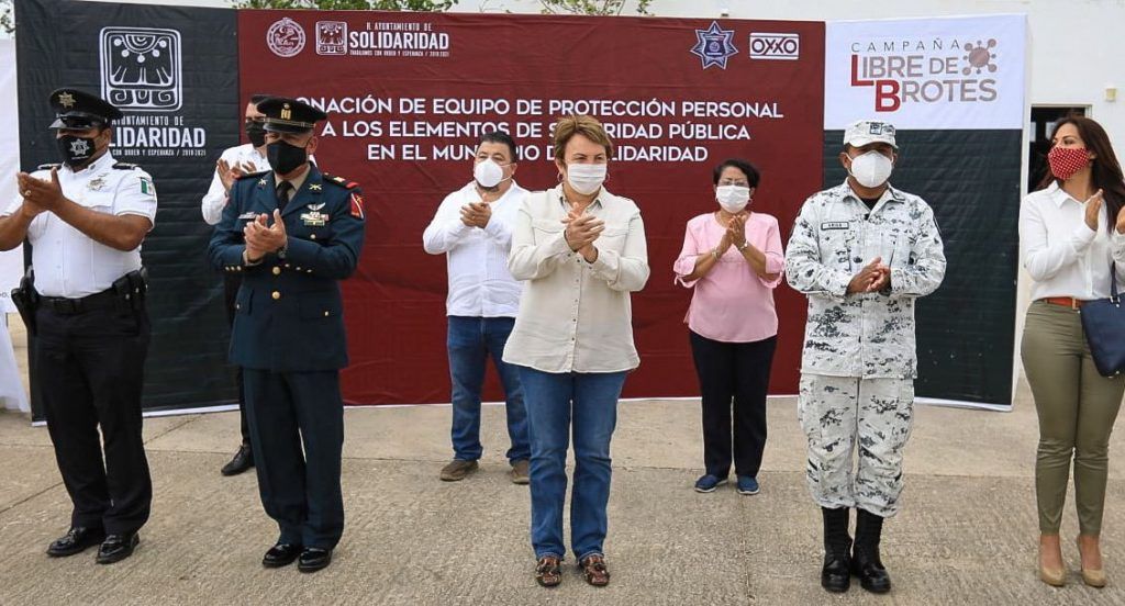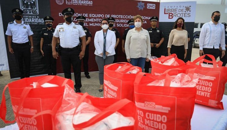 Como parte de la estrecha colaboración entre la iniciativa privada y la administración municipal para hacerle frente al Covid-19, la presidenta Laura Beristain Navarrete recibió, en las instalaciones de Seguridad Pública y Tránsito Municipal, la donación de 11 mil cubrebocas por parte de la cadena comercial Oxxo, a manera de agradecimiento y con la intención de contribuir en el cuidado y protección de los elementos policiacos en esta circunstancia epidemiológica.