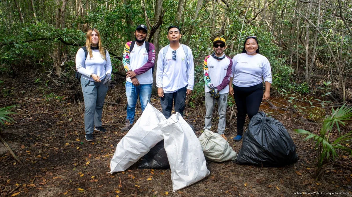 Refuerza gobierno municipal limpieza en cenote y manglar de Punta Esmeralda en Playa del Carmen con retiro de más de 50 kg de residuos.