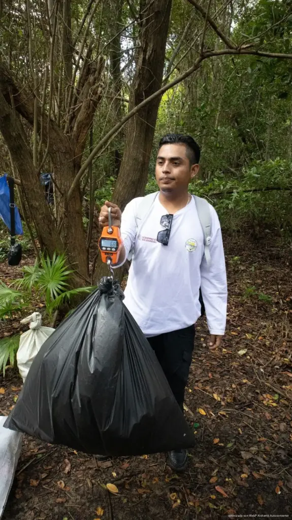Las actividades iniciaron a las 8:00 horas con la limpieza del cenote, donde se recolectaron residuos que impactan negativamente la calidad del agua y la biodiversidad. En esta primera intervención se retiraron 23.6 kg de basura general, 13.3 kg de vidrio, 1 kg de plástico PET, así como pequeñas cantidades de aluminio, chatarra y vidrio roto.