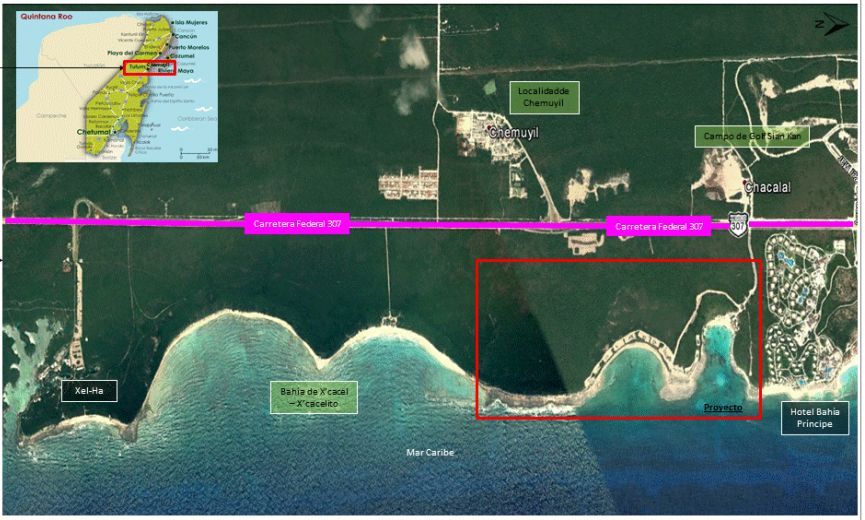 La construcción de dos hoteles en las bahías de Chemuyil y Chemuyilito, que se encuentran ubicadas a un costado del santuario protegido de la tortuga marina en Xcacel, es un grave peligro para los 500 nidos de tortugas caguama y blanca que anualmente son depositados en los 300 metros que comprende este punto de anidación, considerado “índice” en la materia ya que alberga regularmente dos nidos de tortuga por cada metro cuadrado de playa.