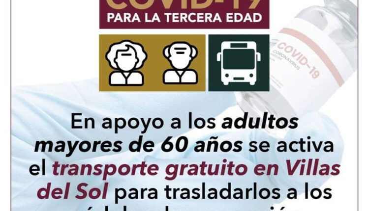 Habrá transporte gratuito para traslado a módulos de vacunación Playa del Carmen por Redacción Actualizado el Mar 12, 2021 102 Comparte El Ayuntamiento de Solidaridad informó que en apoyo a los adultos mayores se habilitó transporte gratuito para trasladarlos a los módulos de vacunación en la Colonia Villas del Sol, este viernes a partir de las 8:00am. Vacunación Covid-19 102 Comparte