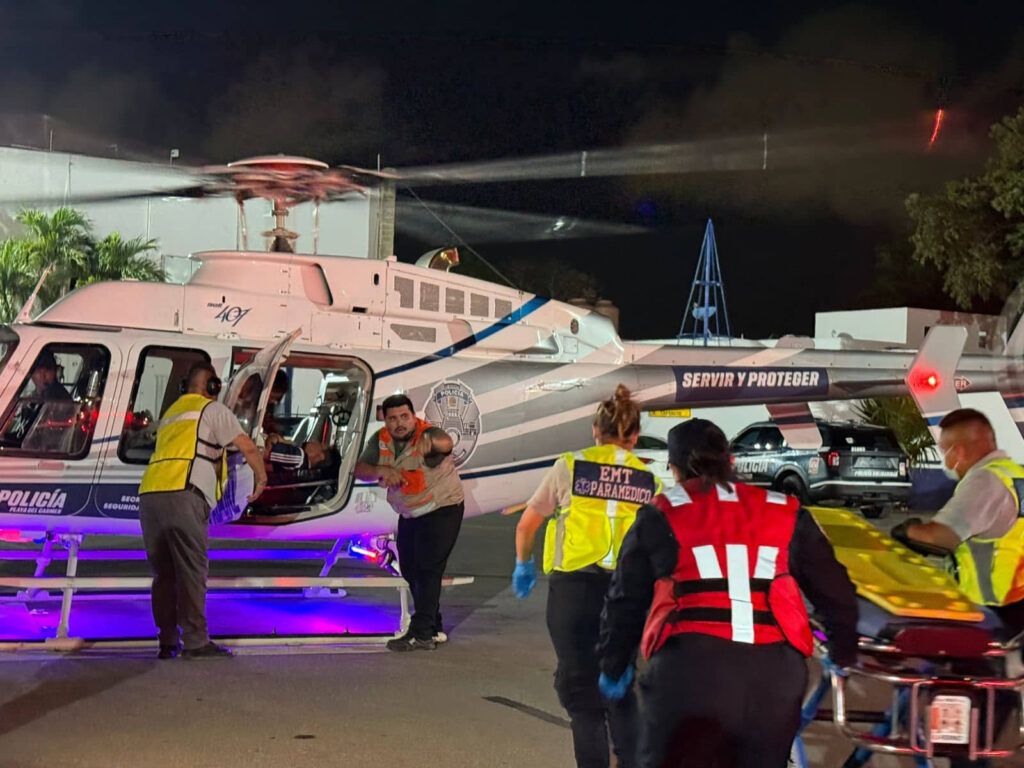 Playa del Carmen, Quintana Roo.- Una rápida y efectiva acción coordinada entre el helicóptero de la Secretaría de Seguridad Ciudadana de Playa del Carmen y personal de la Secretaría de Protección Civil, Prevención de Riesgos y Bomberos, permitió el rescate y traslado de personas lesionadas luego de un accidente carretero ocurrido en el municipio vecino de Puerto Morelos.