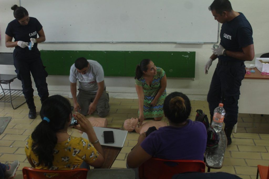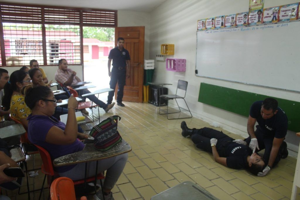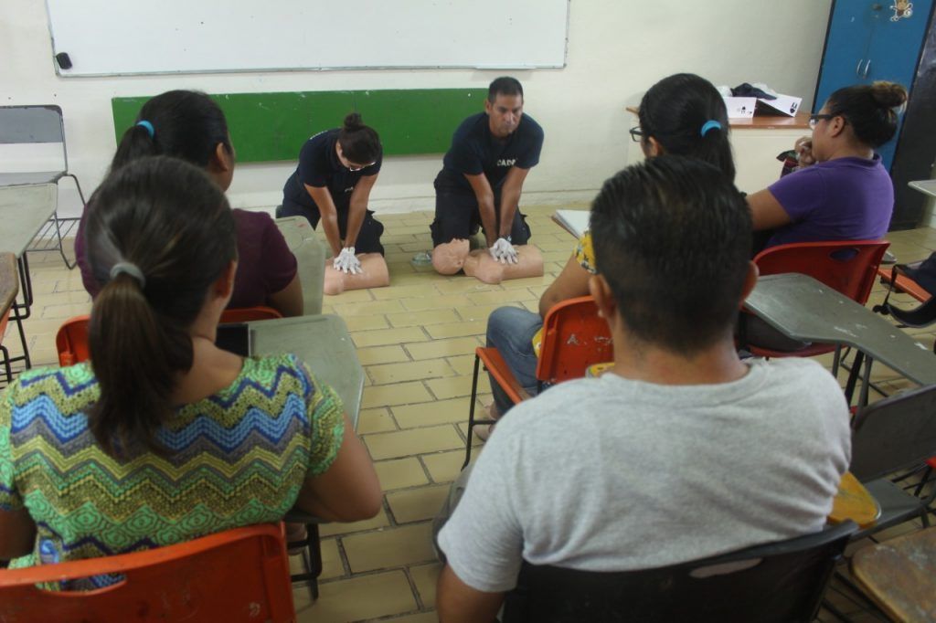 Para reforzar las labores preventivas, que impulsa la presidente municipal de Solidaridad, Laura Beristain Navarrete, la Dirección General de Seguridad Pública y Tránsito de Solidaridad que dirige el comandante Jorge Robles Aguilar, imparte técnicas de Reanimación Cardiopulmonar (RCP), atención de heridas y lesiones en escuelas y parques, con el objetivo de proporcionar a maestros y padres de familia, las herramientas necesarias para actuar en caso de una emergencia y a su vez fomentar la cultura de la prevención.