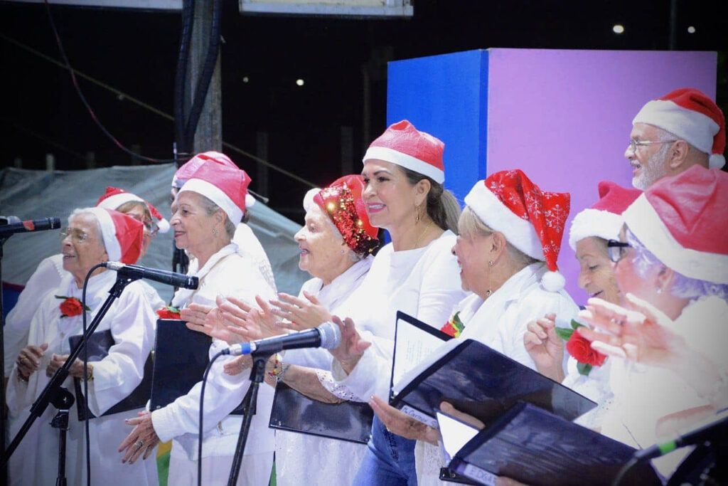 Playa del Carmen, Solidaridad, 18 de diciembre del 2023. – Con el canto de la letanía de la posada y acompañada del coro de adultos mayores, la presidenta municipal Lili Campos cortó el listón inaugural de la villa navideña ubicada en el recinto ferial de la avenida CTM.