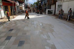 En este recorrido constataron el inicio de la colocación del piso principal de baldosa de piedra que mide 30x45x6 cada una, misma que se colocará en el tramo entre la calle 6 a la 4 norte y en próximos días se aplicarán piezas de 15 por 15 de adocreto en el resto de esta arteria, para darle mayor durabilidad, permeabilidad y con una imagen singular para esta emblemática avenida.
