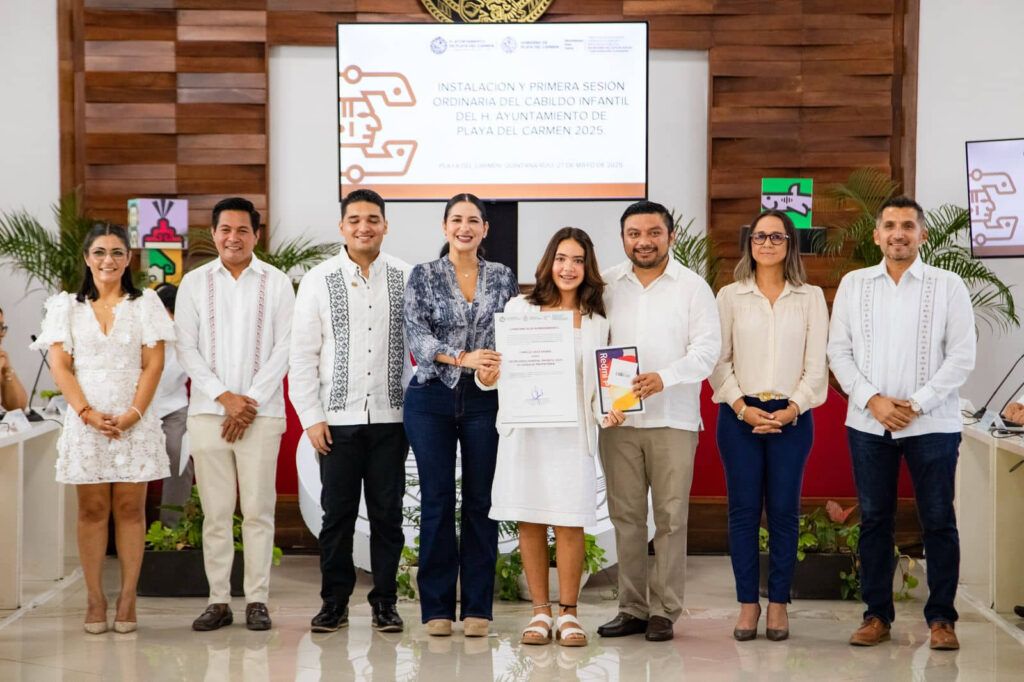 Playa del Carmen, Quintana Roo, 27 de mayo de 2025. — Con el objetivo de sembrar las bases de un municipio más justo, democrático e inclusivo, el gobierno municipal de Playa del Carmen, encabezado por la presidenta Estefanía Mercado, instaló el Cabildo Infantil 2025, un espacio donde las niñas y los niños se convierten en protagonistas de la vida pública, con voz y voto para expresar sus ideas y construir comunidad.