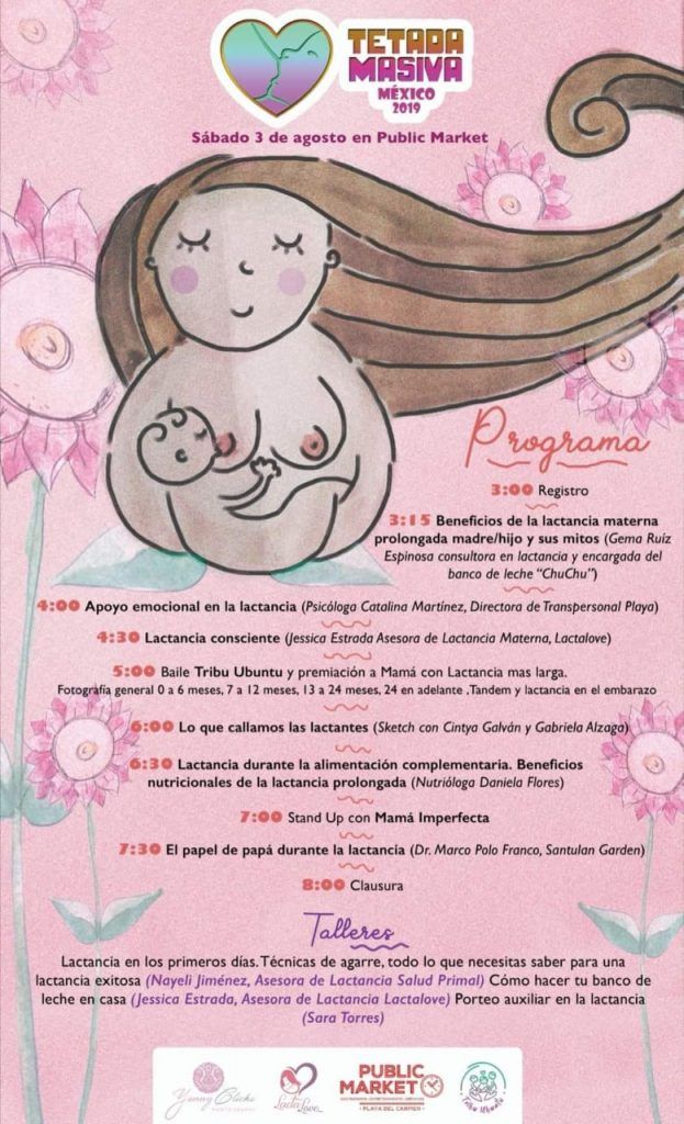 La tribu Ubuntu invita a las familias playenses a que asistan al evento gratuito «Tetada masiva playa del carmen» que se llevará a cabo en la plaza Public Market el próximo sábado 3 de agosto.