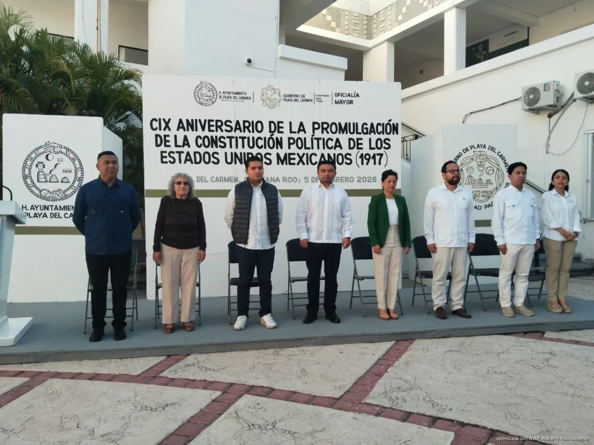 Playa del Carmen, Quintana Roo, 5 de febrero de 2026.— En el marco del 109 aniversario de la promulgación de la Constitución Política de los Estados Unidos Mexicanos, el Gobierno de Playa del Carmen, que encabeza la presidenta municipal Estefanía Mercado, refrendó su compromiso con un ejercicio público apegado a la ley, con vocación transformadora y centrado en el bienestar de la ciudadanía.