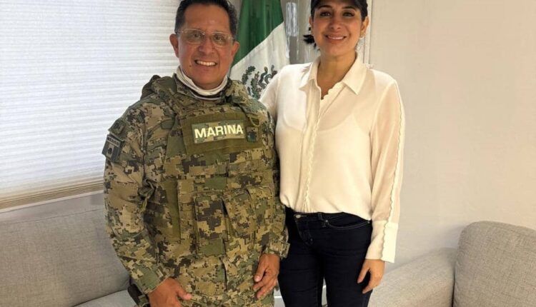 Playa del Carmen, Quintana Roo, 28 de marzo de 2025.— La presidenta municipal Estefanía Mercado se reunió este viernes con el Comandante del Sector Naval, Contraalmirante Cuerpo General Piloto Aviador Diplomado de Estado Mayor, Doctor en Defensa y Seguridad Nacional, José Alberto Rodríguez Cuevas, a fin de coordinar y fortalecer acciones y cooperación en materia de limpieza de playas y seguridad.
