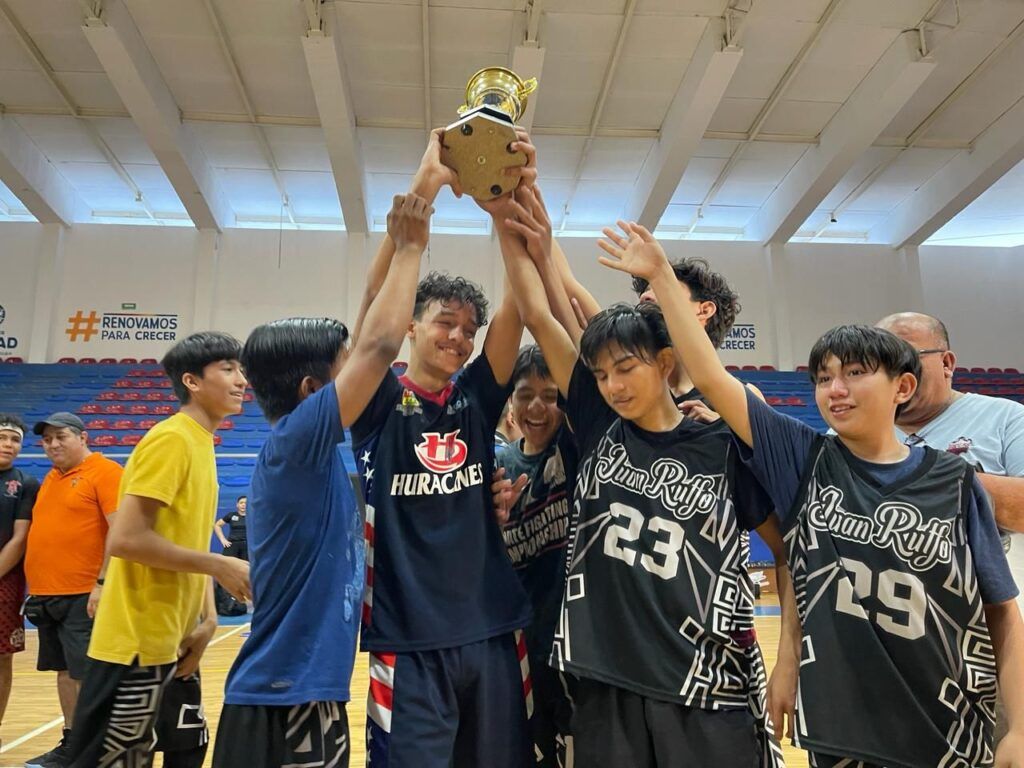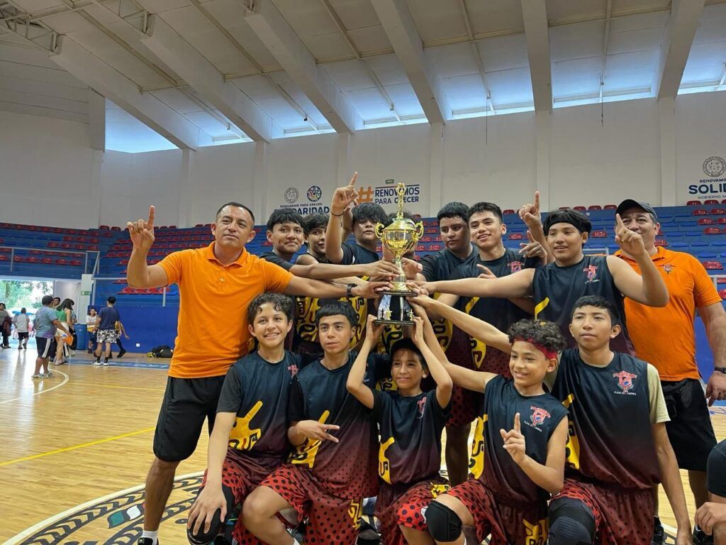Playa del Carmen, Solidaridad, Q. Roo a 10 de febrero de 2024.- Los alumnos de la Escuela Secundaria Técnica #37 “René Efraín Fajardo Vázquez” conquistaron el torneo de la Liga Municipal Estudiantil de Básquetbol, al proclamarse campeones en las ramas femenil y varonil, el gimnasio Poliforum de la unidad deportiva Playa del Carmen, ubicada en la colonia Ejidal, vibró con las grandes jugadas y los gritos de apoyo de amigos, maestros y familiares que se dieron cita para apoyar a los suyos.