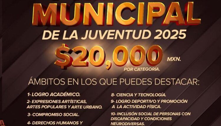 Con un estímulo económico de $20,000 pesos por categoría, el galardón busca reconocer a jóvenes sobresalientes en diversos ámbitos del desarrollo personal y social, fomentando la participación activa y la transformación positiva del municipio.