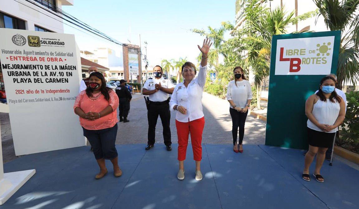 Asimismo, la presidenta municipal inauguró las obras de mejoramiento de la imagen urbana de la avenida 10 con Constituyentes, que vendrá a consolidar la zona turística de Playa del Carmen, donde su gobierno invirtió 5 millones 758 mil 770.22 pesos en beneficio de más de 4 mil habitantes.