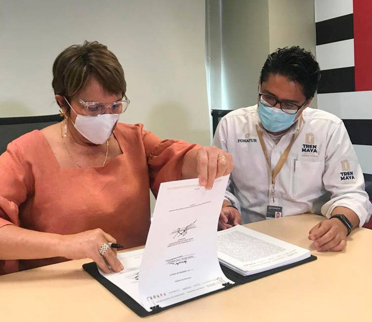 Laura Beristain Navarrete signó el convenio para el Programa de Ordenamiento Territorial del Sureste, que fijará las reglas en el uso de suelo en donde se desarrollará el Tren Maya, documento que está firmado por el presidente de la República, Andrés Manuel López Obrador.