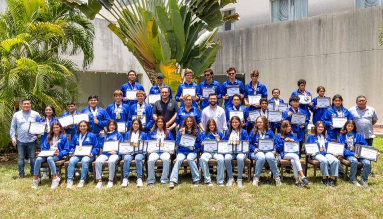 Playa del Carmen, Solidaridad, 31 de julio de 2023.- Las y los campeones solidarenses de los Nacionales CONADE 2023 quienes representaron a Quintana Roo, fueron reconocidos por la presidenta Lili Campos, por sus logros reflejados en el medallero con 82 preseas obtenidas en las disciplinas de: patines sobre ruedas, natación, vela, levantamiento de pesas, luchas asociadas, tae kwon do, natación artística, box, surf y breaking.