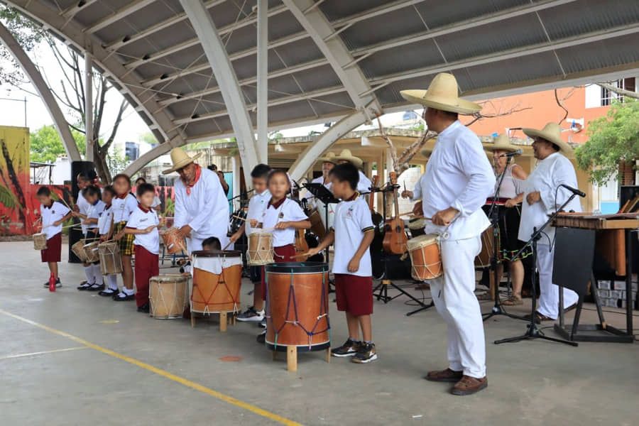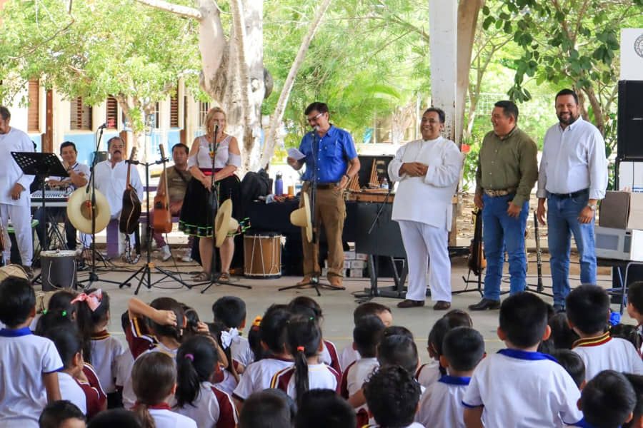 Playa del Carmen, Solidaridad, 10 de octubre del 2023.- Llevan concierto folklórico a escuela en Villa del Sol. A través del IMCAS el gobierno municipal difunde la cultura ancestral de la región, para que alumnos tengan arraigo por las tradiciones
