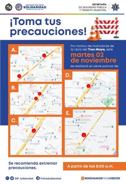 Mañana martes a partir de las 8:00 hrs., se realizarán cierres parciales de circulación con motivo de las obras del Tren Maya.