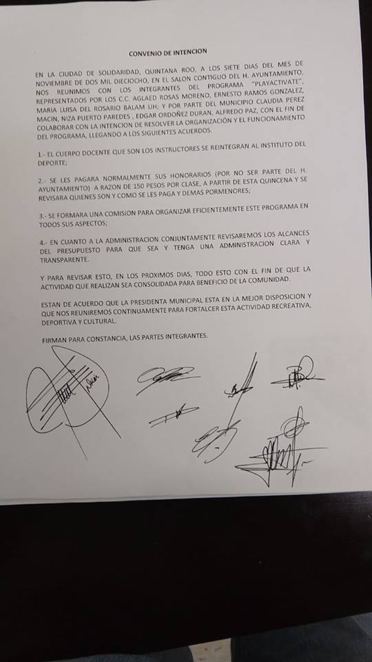 Playa del Carmen, MX; Una manifestación de instructores de zumba en el palacio municipal de Solidaridad debido a que fueron dados de baja por no presentarse a firmar, puso al descubierto manejos irregulares de dinero en la administración de Cristina Torres por parte de la dirección de Desarrollo Económico ya que reportaron una nómina de 192 mil pesos para el pago de los instructores quienes manifestaron que el listado nominal no correspondía con lo que mensualmente cobraban.