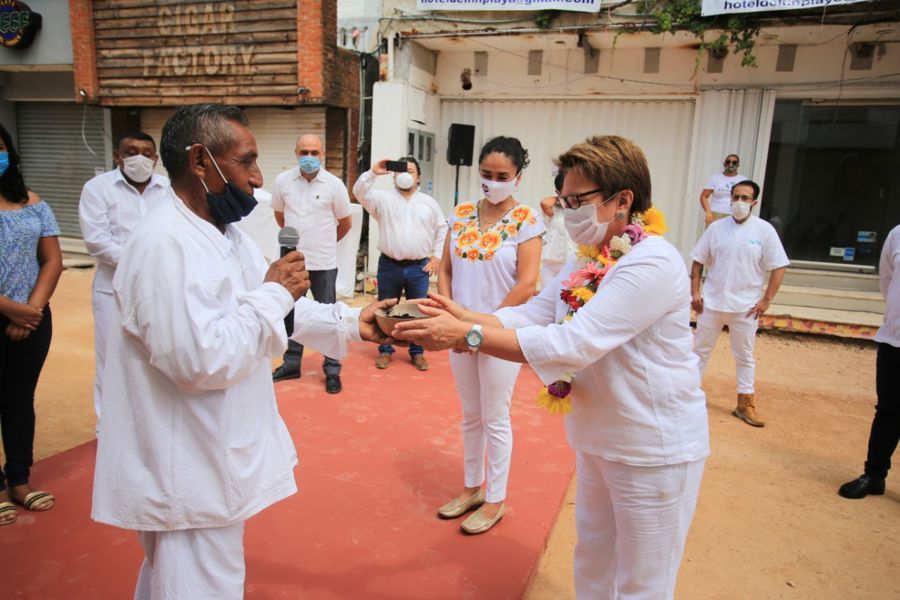 La presidenta municipal de Solidaridad, Laura Beristain Navarrete, rodeada de representantes de dignatarios mayas de Chancah Veracruz y músicos Maya Pax de la agrupación Chancah de la Cruz destacó, que aunque la contingencia sanitaria por COVID-19 ha ocupado nuestros mayores desvelos, esfuerzos y recursos, vale la pena recordar que nuestro país cumple dos años de iniciar su Cuarta Transformación de la mano del presidente Andrés Manuel López Obrador y en donde la valorización de los pueblos originarios es primordial.