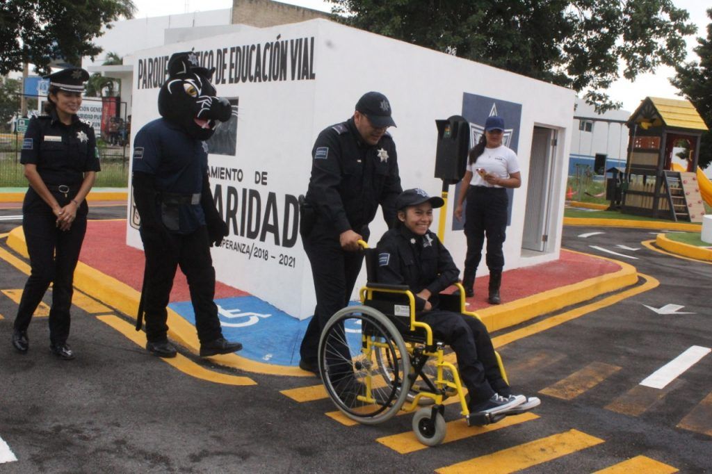 En el marco del programa “Policía Cerca de Ti”, la pequeña Casandra, quien tiene discapacidad motriz, recibió un reconocimiento como Policía Honoraria y con una sonrisa en su rostro realizó una visita guiada por el comandante Jorge Robles y el cuerpo de mandos para saludar a los policías, escuchar a la banda de guerra, conocer el despacho de Seguridad Pública, las instalaciones del Centro de Inteligencia y Monitoreo Urbano (CIMUS) y el Parque Temático de Educación Vial de la Dirección de Tránsito.