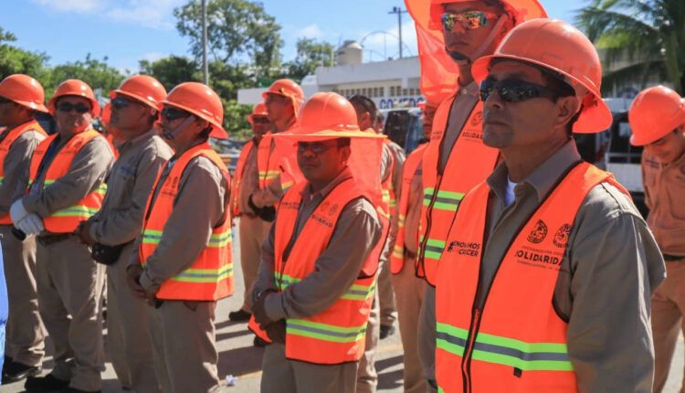 Playa del Carmen, Solidaridad, 15 de noviembre del 2023. – Autoridades municipales de Solidaridad entregaron uniformes para 55 colaboradores de las direcciones de Alumbrado Público y Normatividad y Saneamiento Ambiental, con el objetivo de hacer eficiente y garantizar su seguridad al momento de realizar su labor.