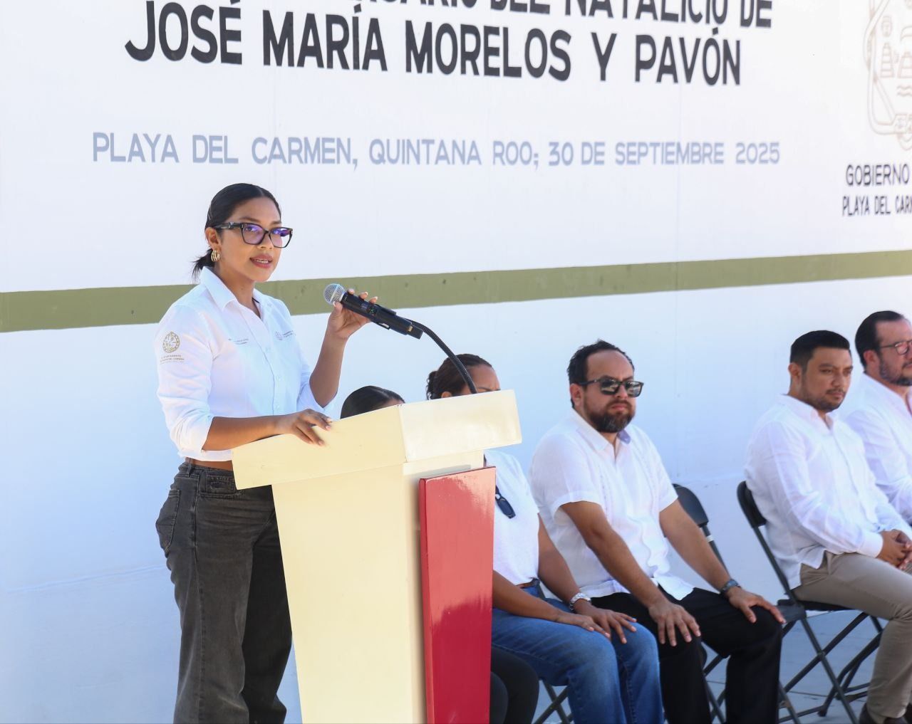 Playa del Carmen, Quintana Roo, 30 de septiembre de 2025.– En el marco del CCLX aniversario del natalicio de José María Morelos y Pavón, la administración municipal, encabezada por la presidenta Estefanía Mercado, realizó una ceremonia cívica en la que se rindieron honores a la bandera y se entonaron los himnos a Quintana Roo y Nacional Mexicano, reafirmando el respeto y la solemnidad de los símbolos patrios.