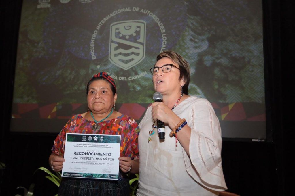 Durante su conferencia magistral sobre el tema Derechos Humanos y los Pueblos Indígenas, la Premio Nobel de la Paz, Rigoberta Menchú Tum, reconoció el compromiso de la alcaldesa de Solidaridad, Laura Beristain Navarrete, por transformar el municipio en beneficio de la ciudadanía.