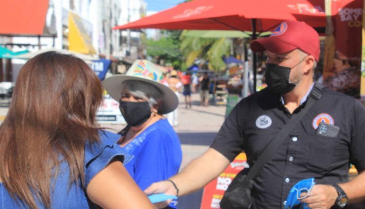 En seguimiento a las medidas sanitarias para evitar contagios de Covid-19, el gobierno que preside Laura Beristain Navarrete, a través de la Secretaría de Seguridad Pública y Tránsito, repartió 500 cubrebocas sobre la Quinta Avenida y brindó información en puntos turísticos y de mayor afluencia, sobre su uso obligatorio.