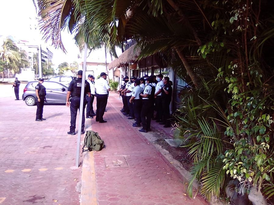 Alrededor de las 09:00 horas, los elementos policíacos se plantaron en la caseta policial ubicada en el cruce de las avenidas CMT y calle Flamingos, donde exigían a los altos mandos no presionarlos a realizar dichos operativos porque no tienen las garantías de seguridad, aunado a que exigen el pago de sus aguinaldos, del que temen no se haga a tiempo por falta de recursos del ayuntamiento.