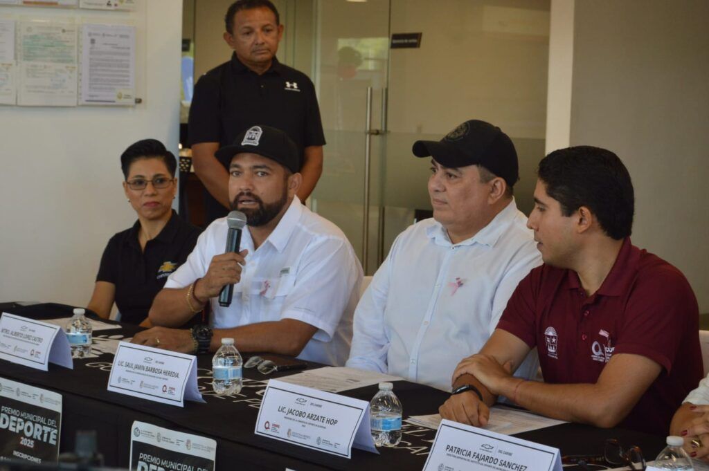 Playa del Carmen, Quintana Roo, 2 de octubre de 2025.– Como parte de la estrategia integral para fortalecer el deporte y reconocer a quienes destacan en esta materia, el gobierno municipal, que encabeza la presidenta Estefanía Mercado, lanzó la convocatoria al Premio Municipal del Deporte 2025, en un acto encabezado por el regidor presidente de la Comisión de Salud, Educación y Deporte, Saúl Barbosa, y el director del Instituto Municipal del Deporte, Alberto López.