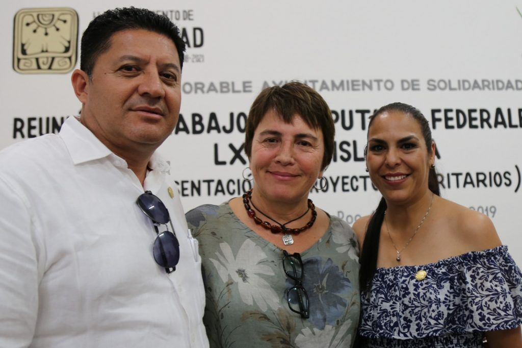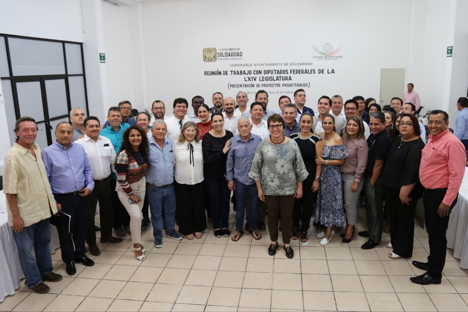Diputados de la LXIV Legislatura sostuvieron una reunión de trabajo con la presidenta municipal, Laura Beristain Navarrete, integrantes del Cabildo, funcionarios y sector empresarial para la presentación de proyectos que son prioritarios para Solidaridad en el ámbito turístico, infraestructura, desarrollo económico y seguridad pública y tránsito.