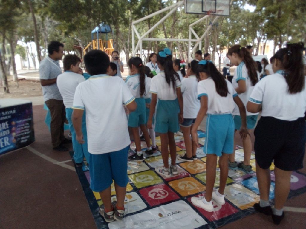 Yamili Collí Cach, Jefe del Departamento de Divulgación Ambiental, acompañada de directivos de esta área perteneciente a la Dirección de Medio Ambiente y Cambio Climático del ayuntamiento, informaron que esta actividad consiste en crear conciencia sobre temas ambientales y en especial el cuidado del agua y los acuíferos, enfocada a niños de diversas escuelas a través de actividades lúdicas y juegos, actividad que se hace extensiva a toda la población.
