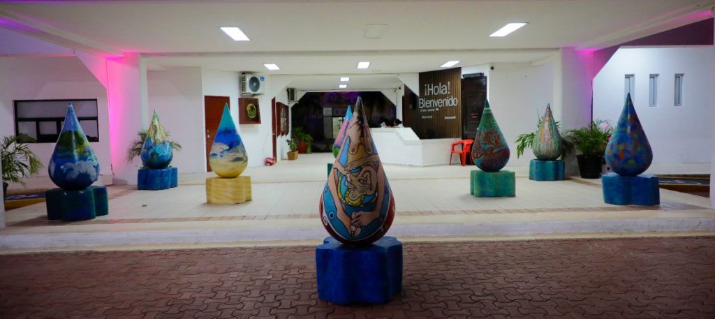 Como parte de esta jornada está la muestra de pinturas sobre el cuidado del agua, plasmadas en figuras que representan gotas de agua y que a partir der esta semana estarán en exposición en la entrada de los bajos del palacio municipal.