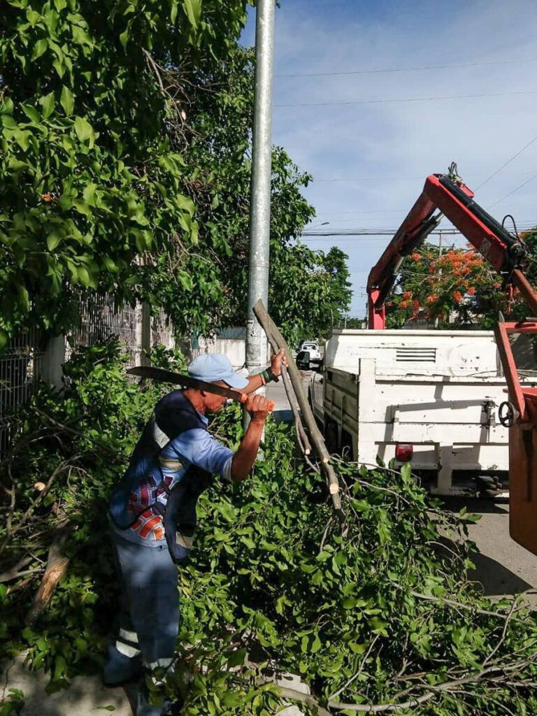 Playa del Carmen, Solidaridad, 2 de agosto del 2023.- Más de tres mil árboles han sido podados de junio a la fecha por parte de la Secretaría de Servicios Públicos Municipales, cumpliendo las indicaciones de la presidenta Lili Campos para evitar accidentes y proteger a las personas durante esta temporada de huracanes.