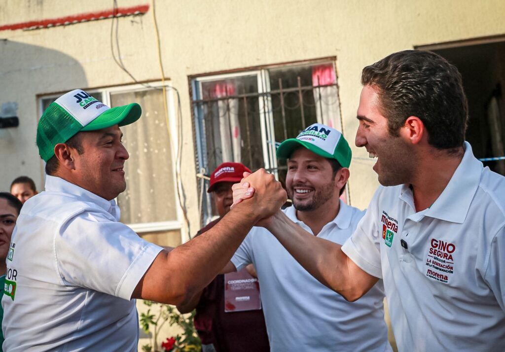 Juan Carrillo, candidato a diputado federal por el distrito I de la coalición Sigamos Haciendo Historia de Partido Verde, Morena y PT, caminó Villas del Sol acompañado por Gino Segura, candidato a senador de la Cuarta Transformación, en donde expresó que “necesitamos un Congreso a favor del pueblo”:
