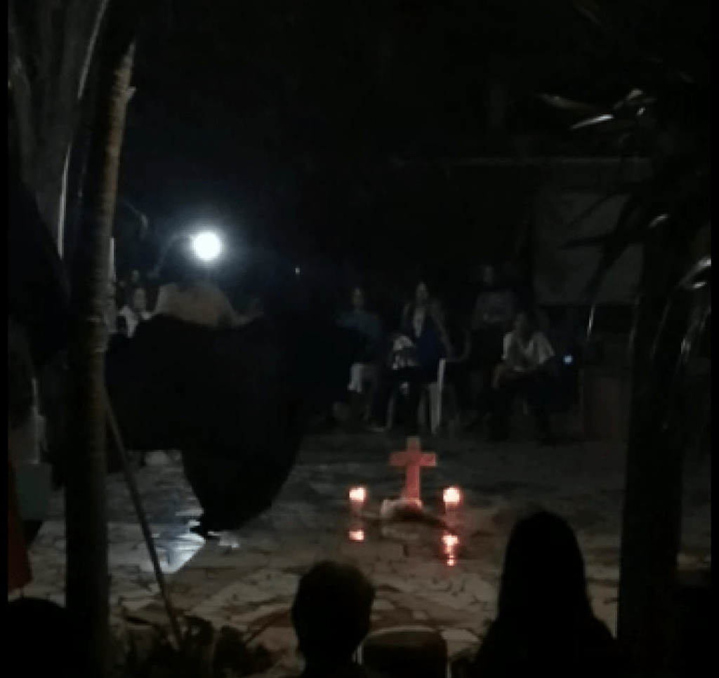 Destacó el momento “clímax” del festival artístico con la presentación de la obra “Toque de Queda”, de la compañía Operativo Silla Móvil, montaje que previamente contó con la presencia de proyectos locales, música de son jarocho, décimas y versos, además de la participación del coro de la Casa de la Cultura de Playa del Carmen.